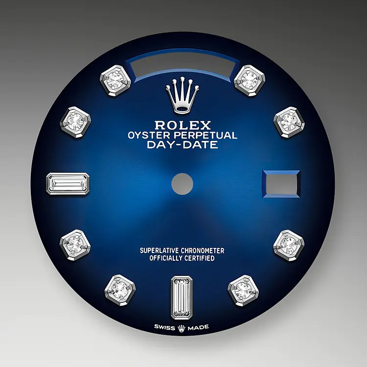 The dial is the distinctive face of a Rolex watch, the feature most responsible for its identity and readability. Characterised by hour markers fashioned from gold to prevent tarnishing, every Rolex dial is designed and manufactured in-house, largely by hand to ensure perfection.