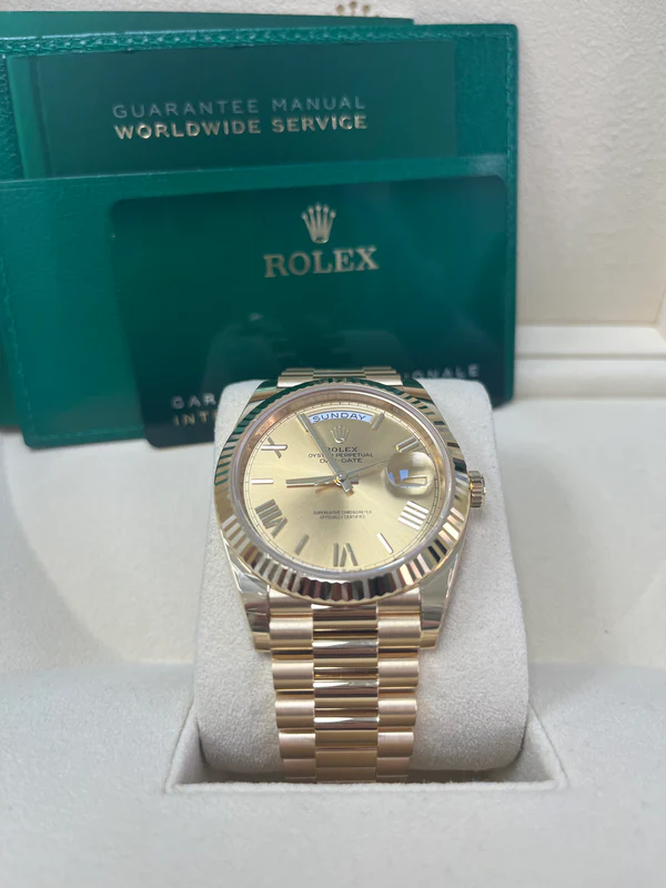 Rolex Day-Date 40 Yellow Gold Champagne Roman Dial Fluted Bezel (Ref # 228238)